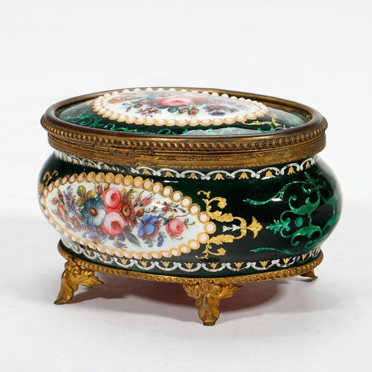 Gilt Enameled Box, with 3 Other Gilt Objects