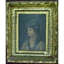 Gilt framed oil on canvas, mid 19th C., portrait of a woman of nobility, measures approx. 7 1/2" x 9 1/2"