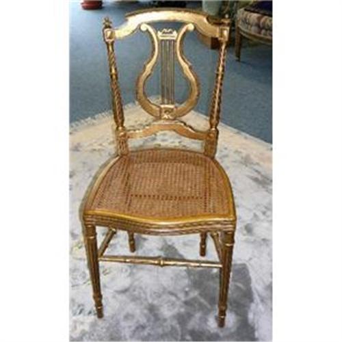 This is an exquisite petite French ladies chair with a lyre back and caned seat. Use it as a vanity, desk, side or accent chair...it's a beauty!!!