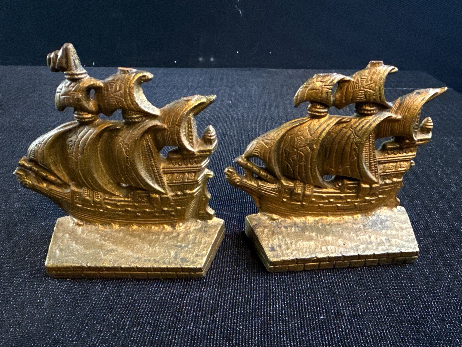 Gilt Iron Sailing Ship Book Ends 4T