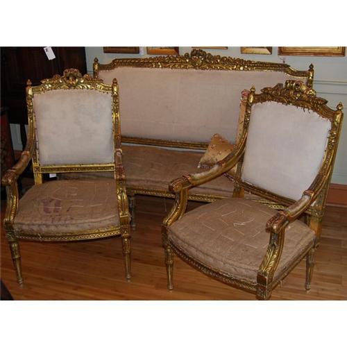 <tr><td>Title:Gilt Italian Carved Settee and Pair Arm Chairs </td></tr>