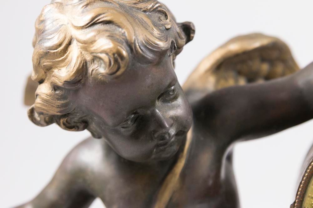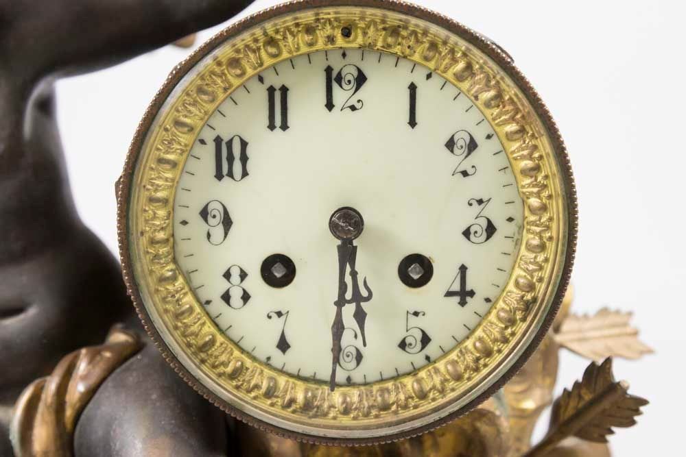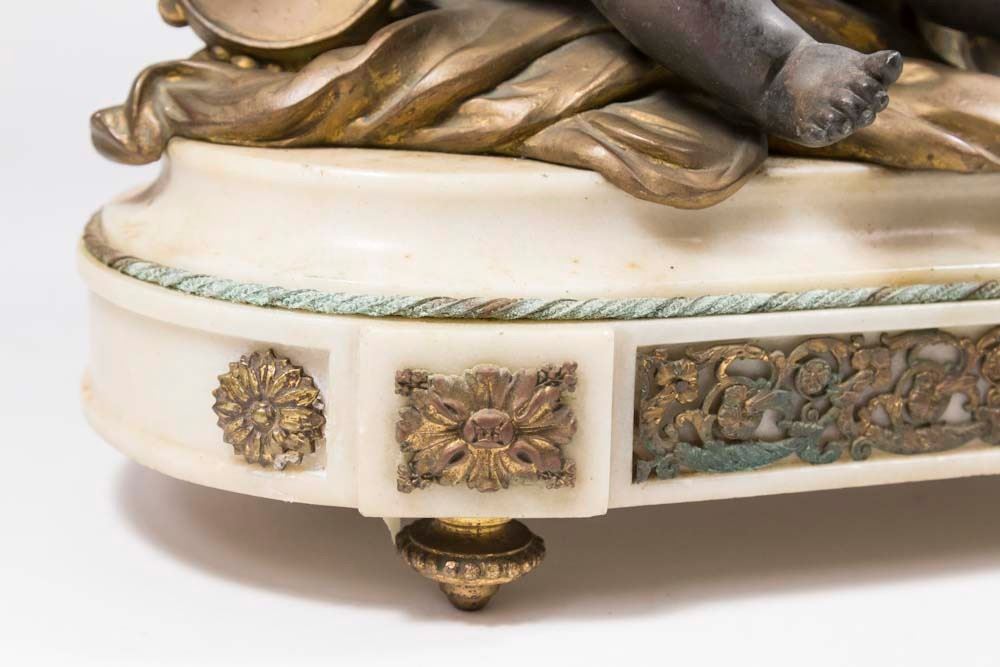 Gilt Metal, Bronze, & Marble Figural Mantel Clock