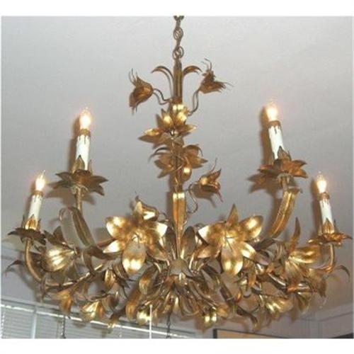 <tr><td>Title:Gilt Tole Floral Chandelier</td></tr>