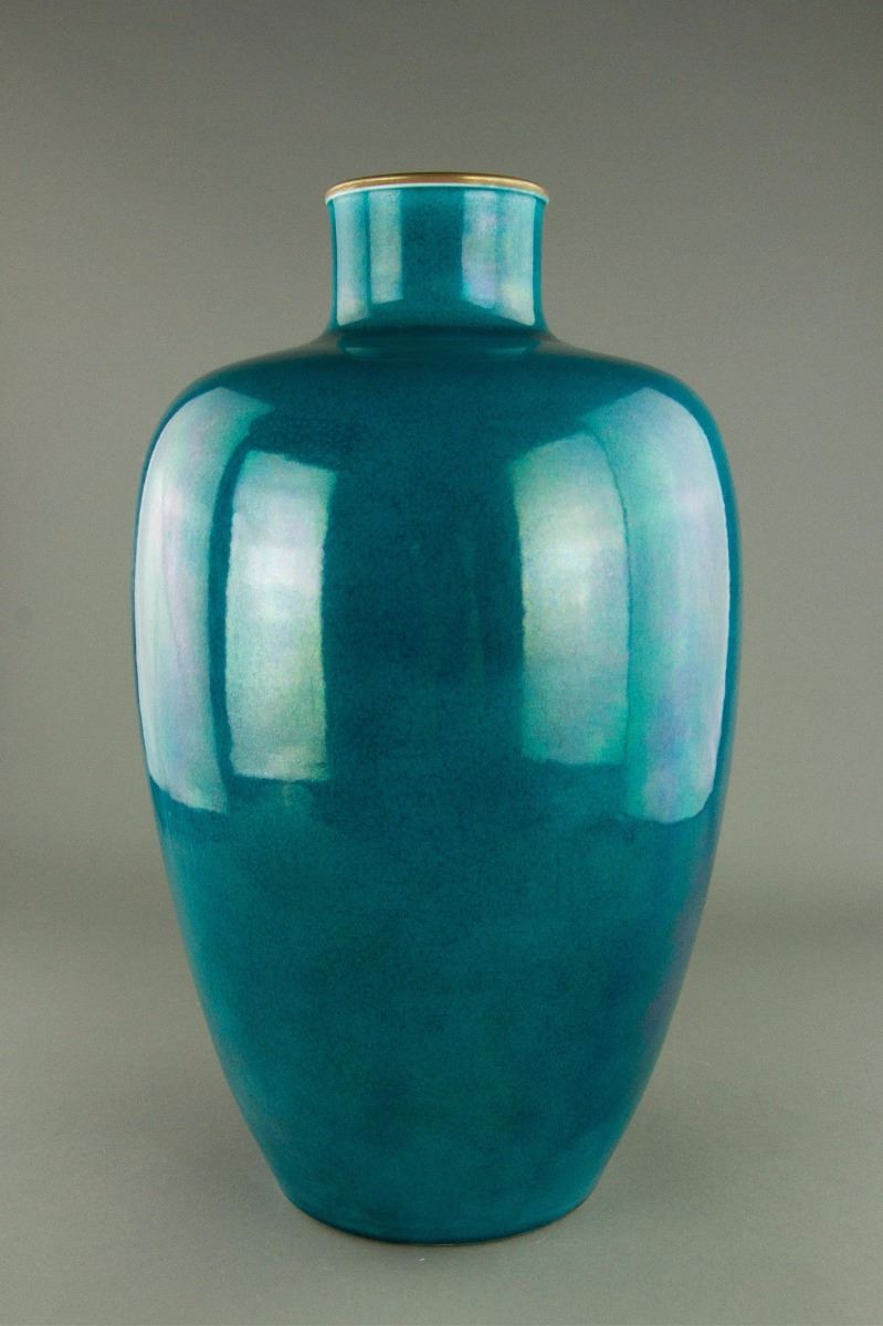 Chinese fine Qing period porcelain vase; of ovoid body with a short cylindrical neck; the body applied with metallic turquoise glaze; four-character Yongzheng mark on base; H: 42 cm, D: 24 cm, 4401 grams