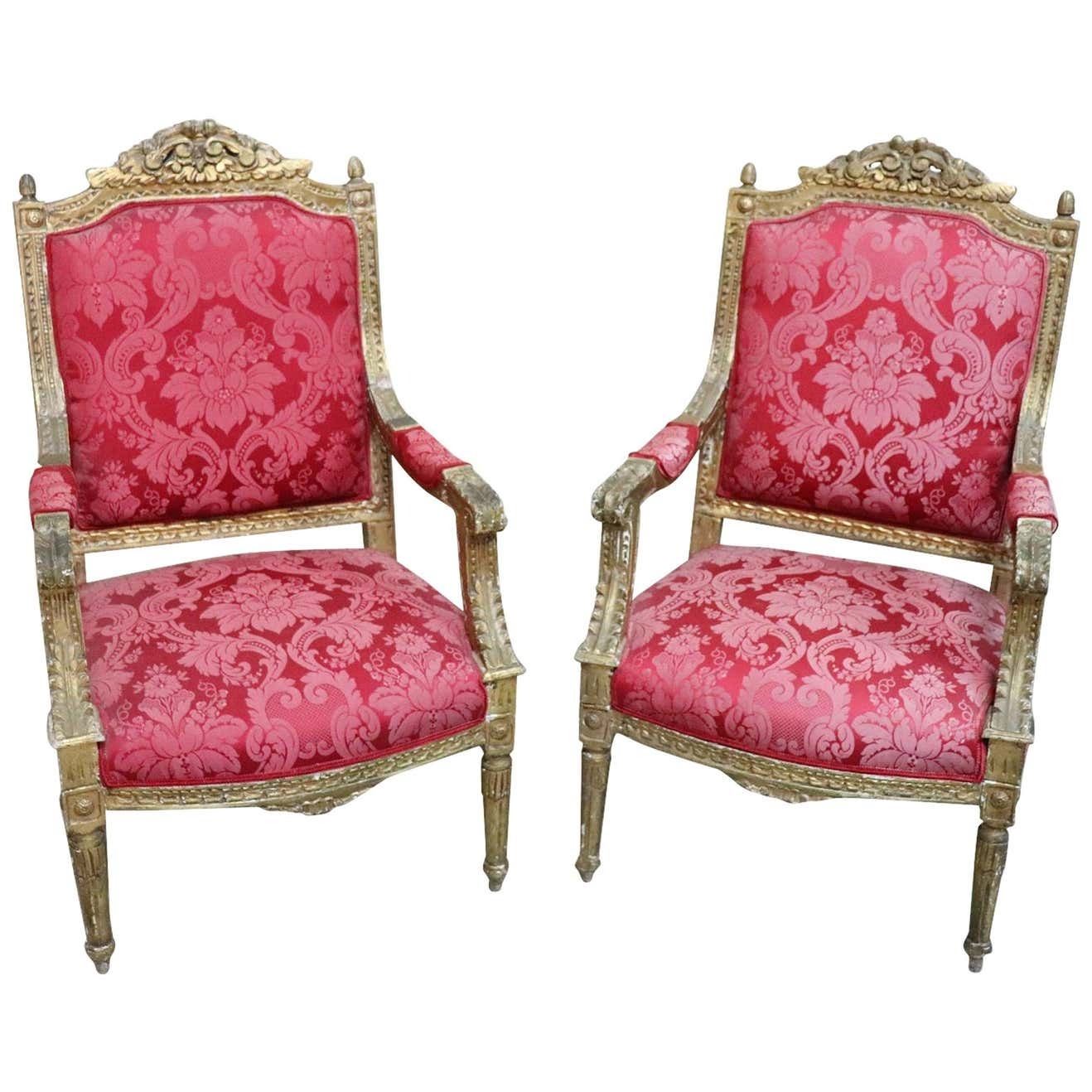 Italian Baroque Style Gilded Wood Pair of Armchairs It was created by skilled craftsmen in traditional style with fine handcrafts. the handwork is very fine with incredible detailling. This is a great piece of valuable collection, a valuable personal alter or a very good present. Don't miss out this chance to get it .Good luck to you!
