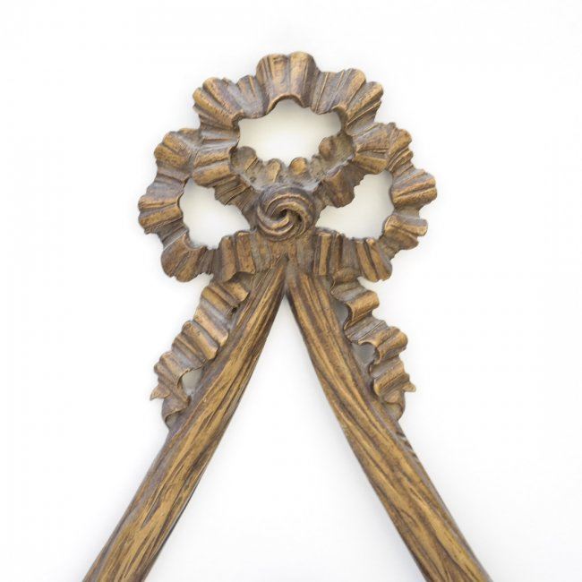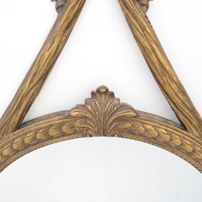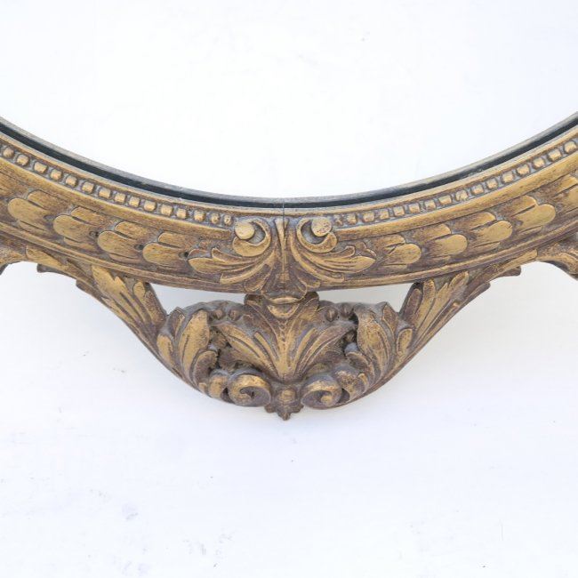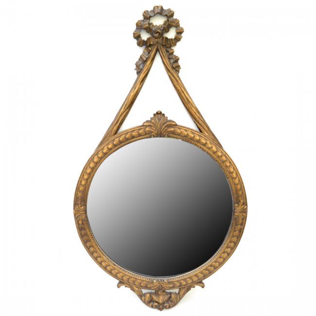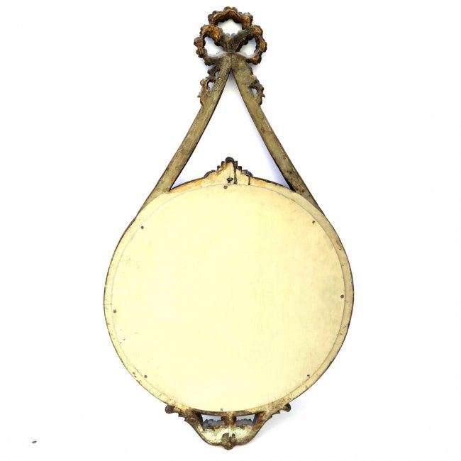 Oval carved mirror with bow knot decor. [43" H x 24" W]. In good condition.