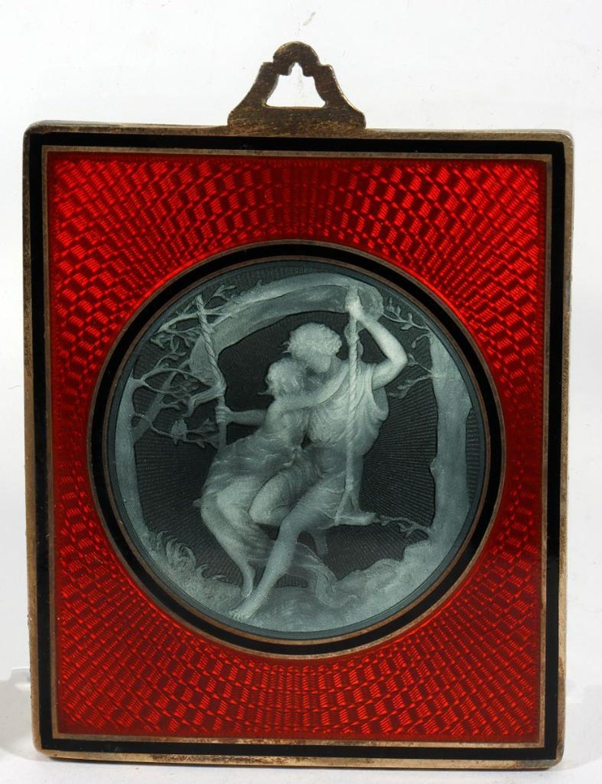 Gilt-framed Enameled Portrait Miniature, with French Enameled Mirror