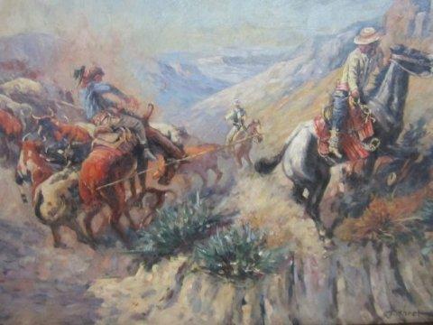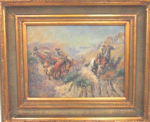 Gilt framed oil painting "Western Scene"