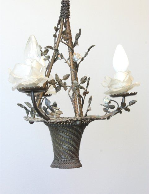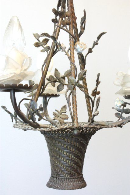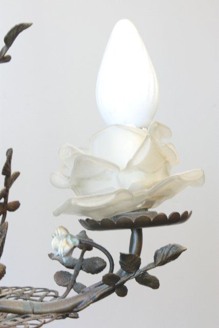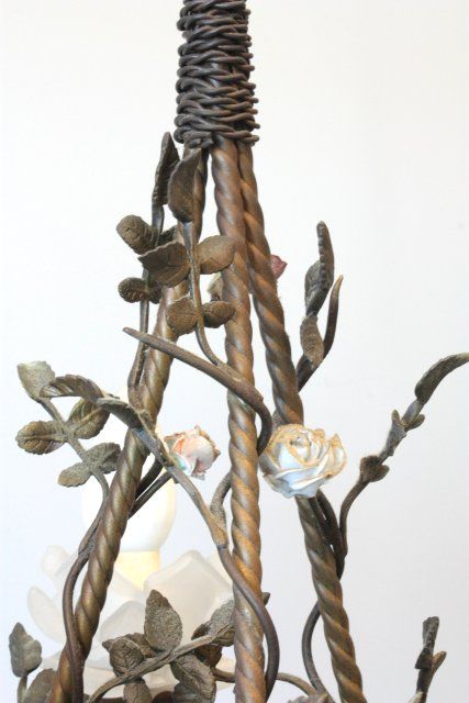 With "Floral" design & applique of porcelain "Flowers" with Lalique style shades. Approx. 20" H x 15" W. Please read our terms of sale.