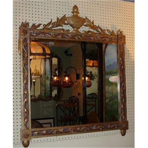 This is a wonderful giltwood mirror with an urn and leaf design motif.