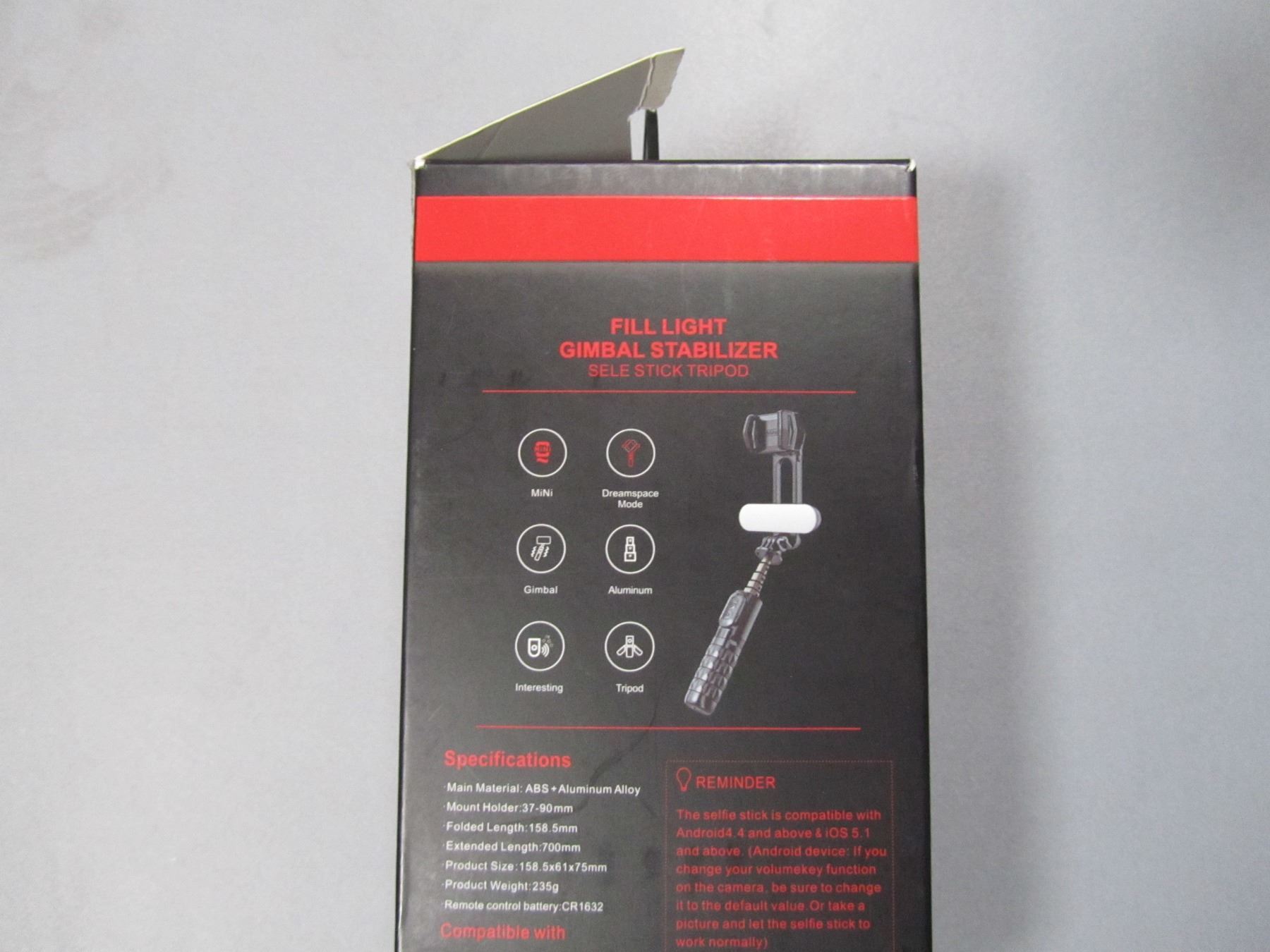 Gimbal Stabilizer Selfie Stick Tripod, removable light