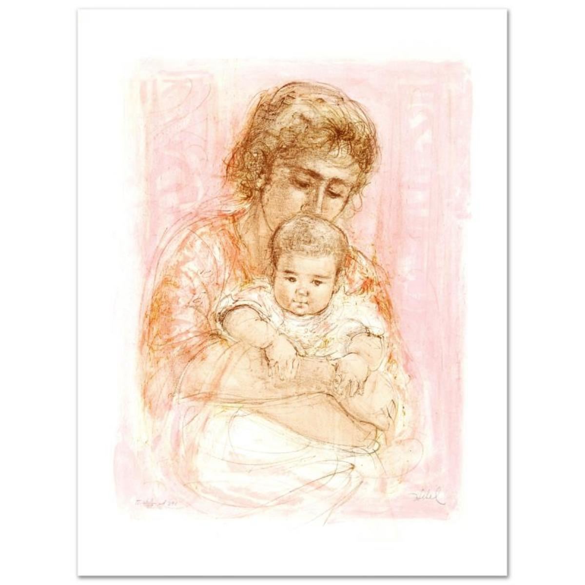 Gina and Child by Hibel (1917-2014). "Gina and Child" is a limited edition lithograph on paper, numbered and hand signed by Edna Hibel (1917-2014). Includes Certificate of Authenticity! Measures approx. 20" x 26" (with border), 16" x 21" (image).
