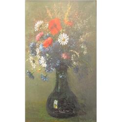 Gindra, J. (1862-1938), canvas, Still life flowers in glass bottle, signed b.r., dim. 53 x 32 cm.