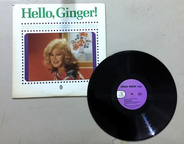 "Hello, Ginger!" Ginger Rogers autographed LP, released in 1965, includes original cover and vinyl record. The album cover has a photo of Ginger Rogers in front of an orange background with a photo of flowers in the top right corner. Purple dots surround the photo and underline the album title. Between the photo and title are the songs listed on the record: What Now My Love; Hello Dolly; Getting To Be A Habit With Me; Let's Call The Whole Thing Off; They All Laughed; Embraceable You; But Not For Me; They Can't Take That Away From Me; Cute; The Boy Who Used To Be You; The Way You Look Tonight; Summer Winds. Conducted and arranged by Jack Marshall. LP is signed by Ginger Rogers to Jack, the owner of this item who personally met Ginger Rogers at the stage door of the Forrest Theater in Philadelphia when she was touring Hello Dolly.