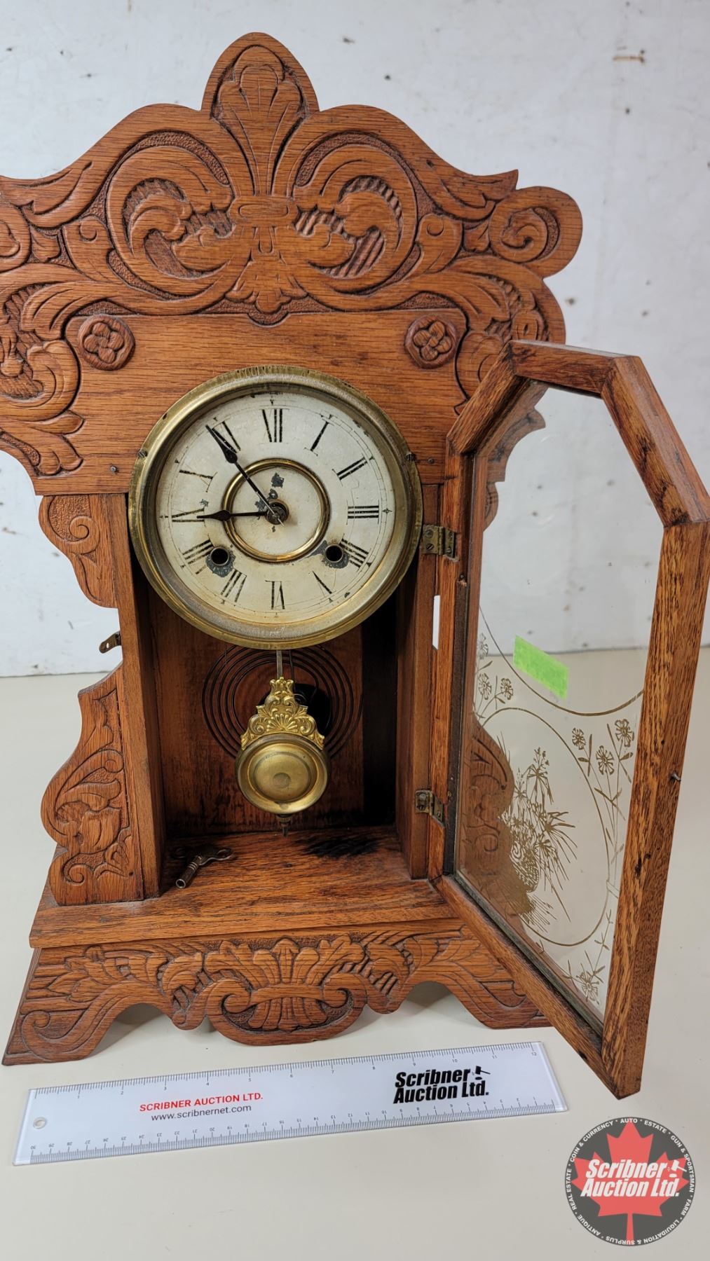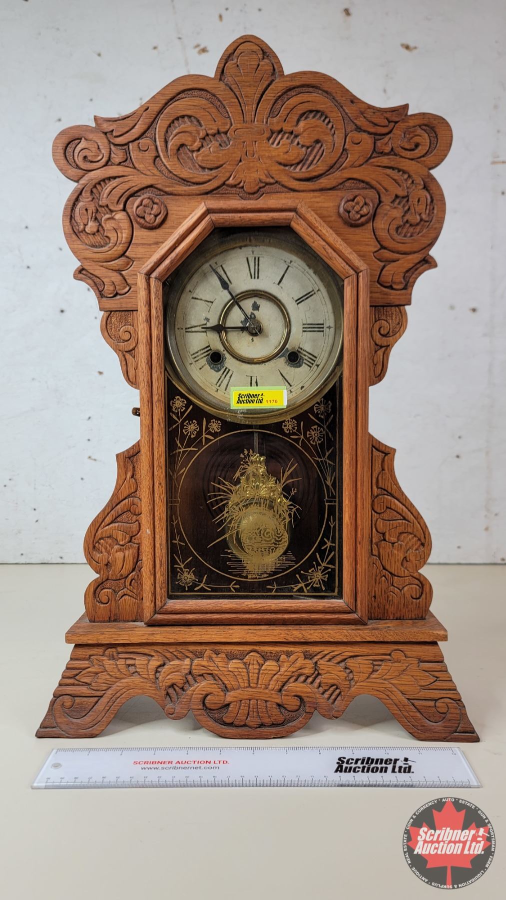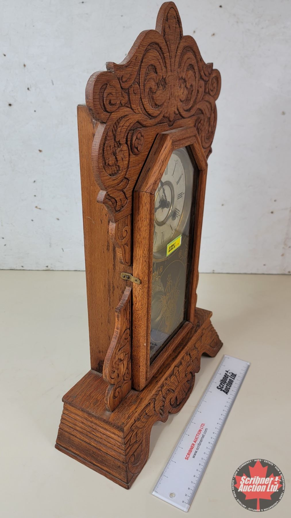 Gingerbread Mantle Clock c/w Key (23"H x 14"W x 5"D)