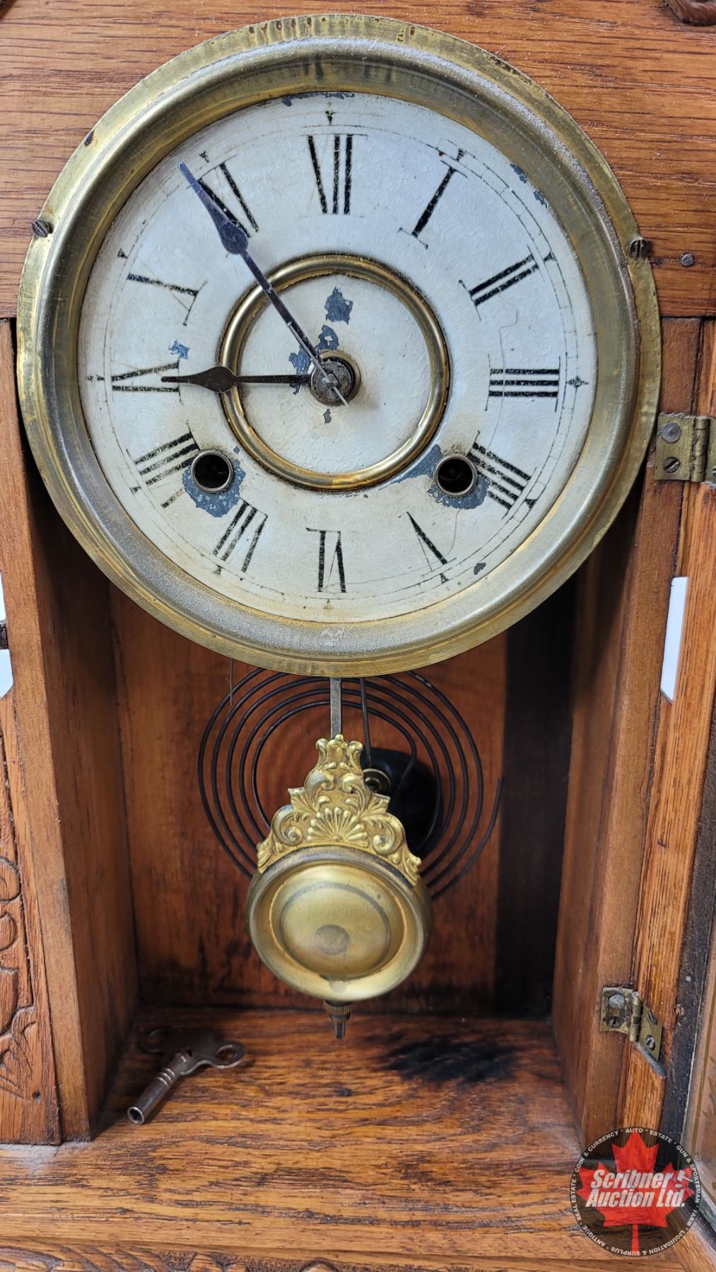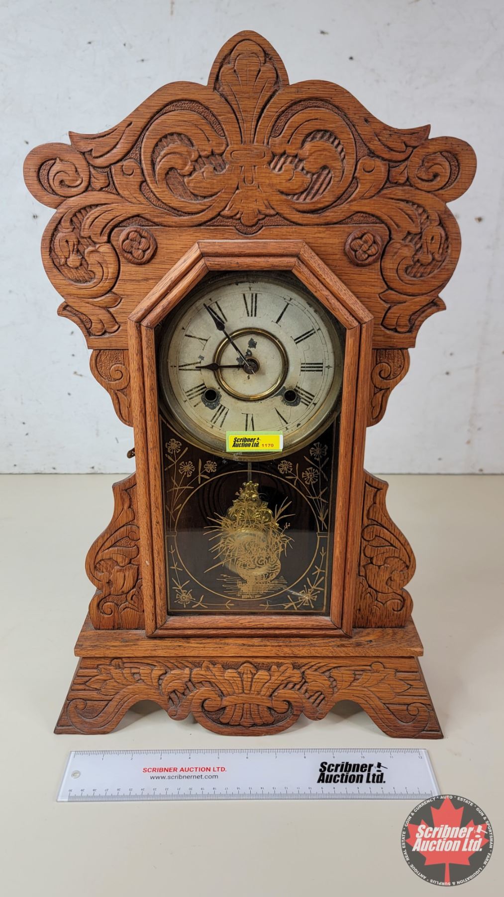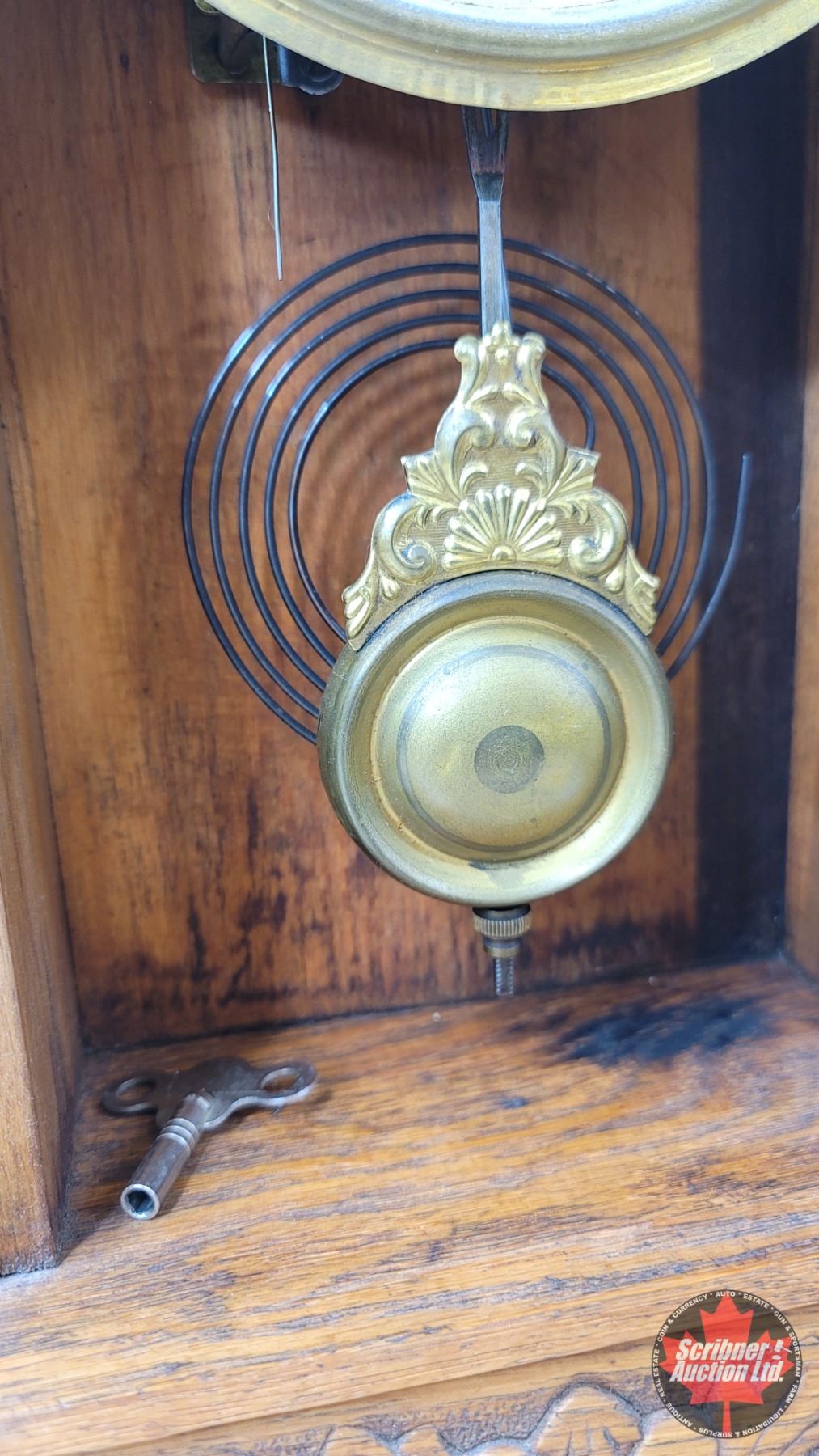 Gingerbread Mantle Clock c/w Key (23"H x 14"W x 5"D)
