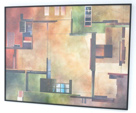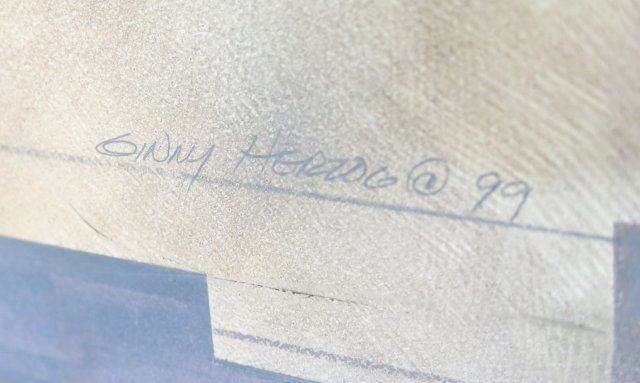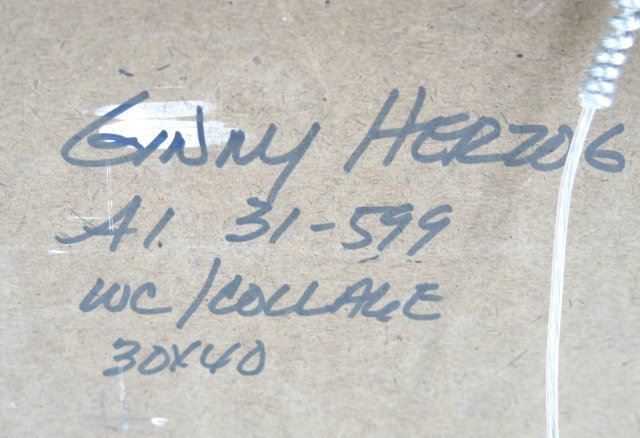 Mixed media collage on board. Framed. Signed & dated 1999, lower right.