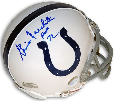 Gino Marchetti was selected to 11 Pro Bowls, was the 1963 Pro Bowl MVP, won 2 NFL Championships and was selected to the Pro Football Hall of Fame in 1972. Gino Marchetti has hand signed this Baltimore Colts Riddell TB mini helmet with HOF 72 inscription. Certificate of Authenticity from Athlon Sports Collectibles.