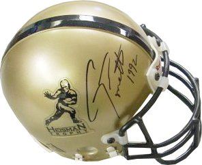 Gino Torretta is best known for winning the Heisman Trophy in 1992 as the quarterback of the University of Miami and playing on the University of Miami's National Championship teams of 1989 and 1991. He also won the 1992 Davey O'Brien National Quarterback Award after his outstanding season. Torretta was elected to the College Football Hall of Fame in 2009 and will be formally inducted in 2010. Gino Torretta has hand autographed this Gold Heisman Authentic Mini Helmet with 1992 inscription. Certificate of Authenticity from Athlon Sports.