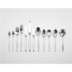 Gio Ponti Diamond flatware Reed & Barton Italy/USA, 1958 sterling silver The Diamond flatware pattern was introduced in 1958 after Gio Ponti worked for three years with chief designer of Reed & Barton Mr. Theodore Cayer. Complete seven piece service for eight including dinner and salad forks, dinner and luncheon knives, and soup, dessert and table spoons. There are two extra dinner forks, dinner knives and luncheon forks. Serving pieces include large carving fork and knife, medium carving fork and knife, three serving forks, three slotted spoons, two serving spoons, two serving spatulas, large salad fork, large ladle, small ladle, jelly spoon, seven seafood forks, pickle fork, four butter knives and eight coffee spoons. Ninety pieces total, each with manufacturer's mark.