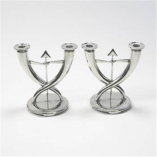 Gio Ponti Fleche candlesticks, pair Christofle Italy, c. 1928 silverplate 8 w x 5.5 d x 8.25 h inches This form was presented at the 16th Venice Biennale in 1928. Literature: Gio Ponti: The Complete Work 1923-1978: Ponti, pg. 41