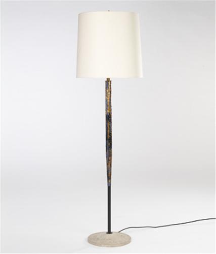 Stem of lamp base has a hand hammered and fire glazed finish executed by Paolo de Poli.