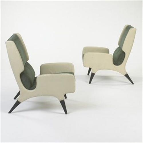 Gio Ponti armchairs from the Hotel Parco dei Principi, Roma, pair Cassina Italy, 1964 skai, upholstery, lacquered wood, brass 24.5 w x 34 d x 36.5 h inches Literature: <i>Gio Ponti: L'Arte Si Innamora Dell'Industria</i>, La Pietra, pg. 372