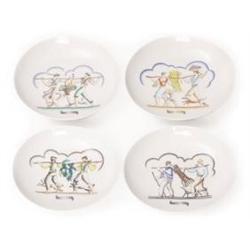Gio Ponti bowls, by Ginori, set of four, glazed porcelain with hand-painted decoration of the four seasons, “Primavera”, “Estate”, “Autunno”, “Inverno”, marked “Riedizione della collezione Gio Ponti-Richard Ginori” and “Manifattura Di Doccia, Florence, Italy”, all numbered 52, mint condition