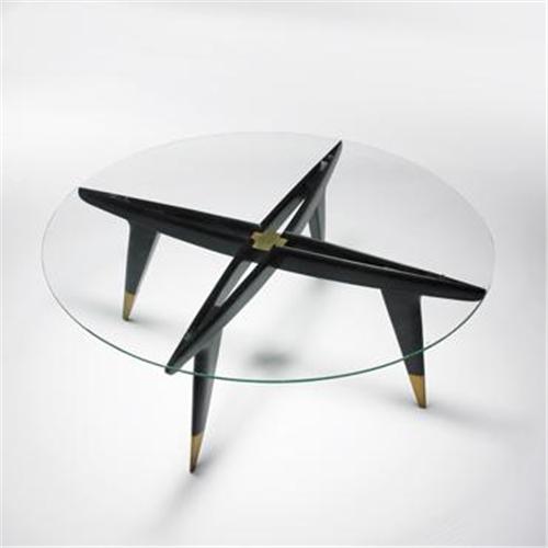 Gio Ponti<BR>coffee table<BR>Giordano Chiesa<BR>Italy, 1953<BR>lacquered wood, tempered glass, brass<BR>39.25 dia x 14.5 h inches<BR>Literature: <BR><i>Gio Ponti: Interni, Oggetti, Designi 1920-1976</i>, Falconi, pg. 160 <i>Gio Ponti: L'Arte Sin Innamora Dell'Industria</i>, La Pietra, pg. 200<BR><BR>Condition of the item is not included in this description. Condition reports are available from Wright upon request. Wright strongly recommends that you review a condition report for each item on which you plan to bid.