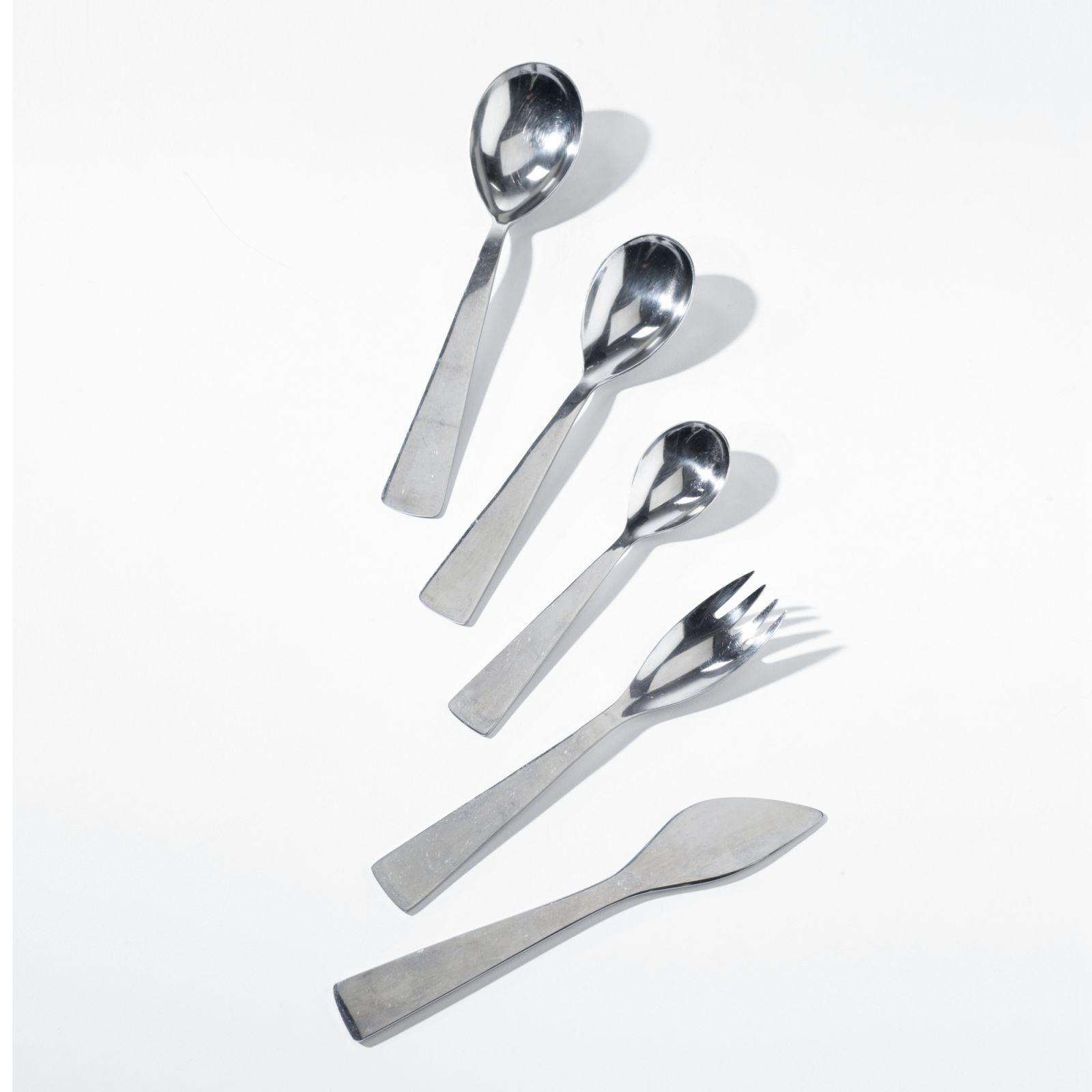 Six-piece service for twelve with three additional serving utensils; seventy-five pieces total. Signed with impressed manufacturer's mark to each element: [Ponti Fraser's Italy].