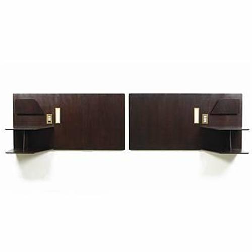 Gio Ponti<BR>headboards from the Hotel Parco dei Principi, pair<BR>Italy, 1964<BR>mahogany, brass, plastic<BR>126"w x 17"d x 31.5"h<BR><BR><BR><BR><BR><BR><BR>