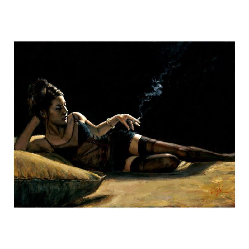"Giorgina II" is a hand embellished limited edition giclee on stretched canvas by Fabian Perez. The piece is numbered and hand signed by the artist and comes with a Certificate of Authenticity. Measures approx. 30" x 40" (image). Please allow 5 additional business for items that include canvas stretch or framing.