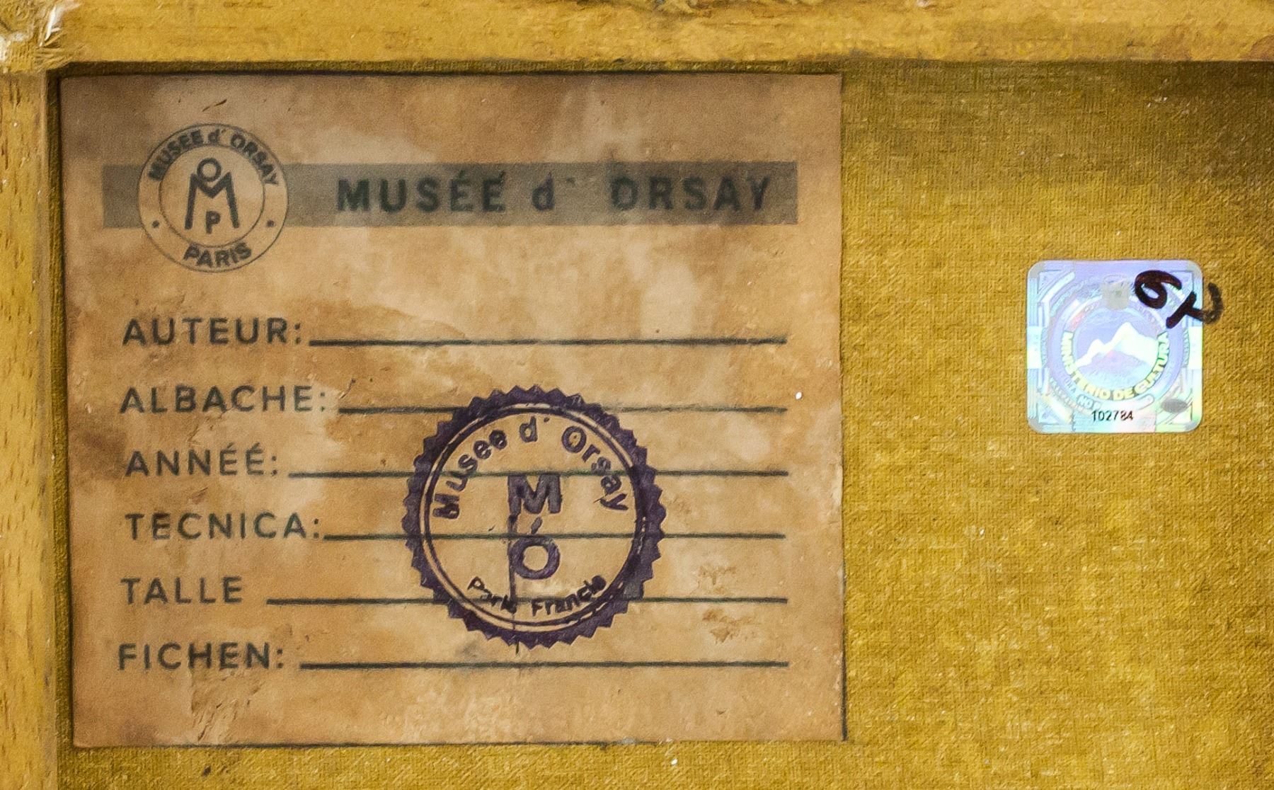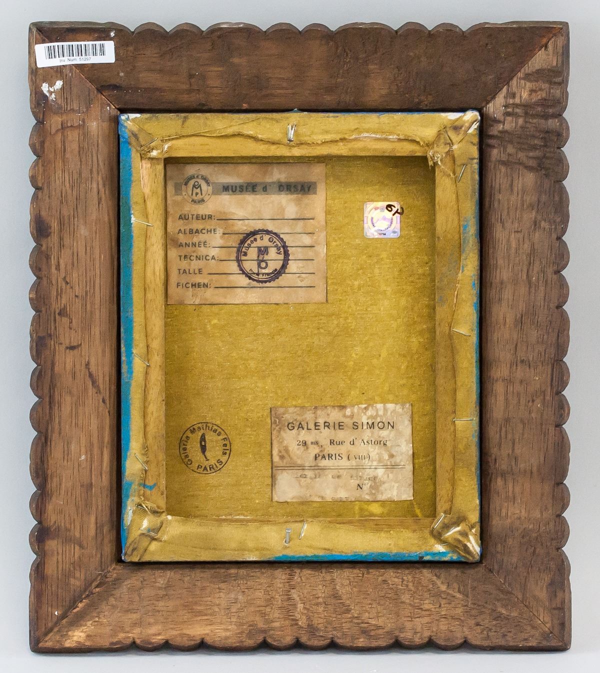 Oil on canvas, framed. Featuring surrealist composition of a humanoid figure. Signed "g.de Chirico" in the top right corner. Label with "MUSEE d'ORSAY AUTEUR ALBACHE ANNEE TECNICA TALLE FICHEN" affixed to verso. Stamp reading "Musee d'Orsay Paris Francis" stamped on label. "Label reading "GALERIE SIMON 29 bis, RUE d'Astorg PARIS (VIII)" attached to verso. "Giorgio de Chirico" stamped on label. "Galerie Mathias Fels PARIS" stamped on verso. Attributed to Giorgio de Chirico (1888-1978, Italian). 26 x 20 cm (10 x 8 inches). Framed size: 35 x 30 cm (14 x 12 inches). PROVENANCE: This lot carries limited provenance from a Southern Ontario estate