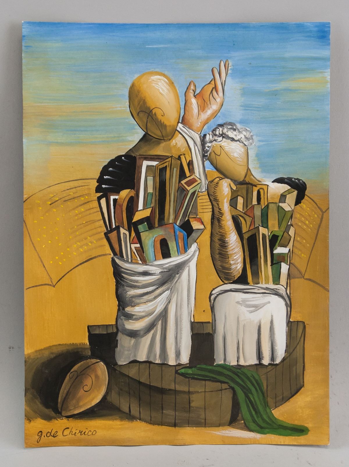 Gouache on paper. Featuring a surrealist portrait. Signed g. de Chirico on the lower left corner. Attributed to Giorgio de Chirico (1888-1978, Italian). 28.5 x 21 cm (11.2 x 8.3 inches). PROVENANCE: Southern Ontario estate