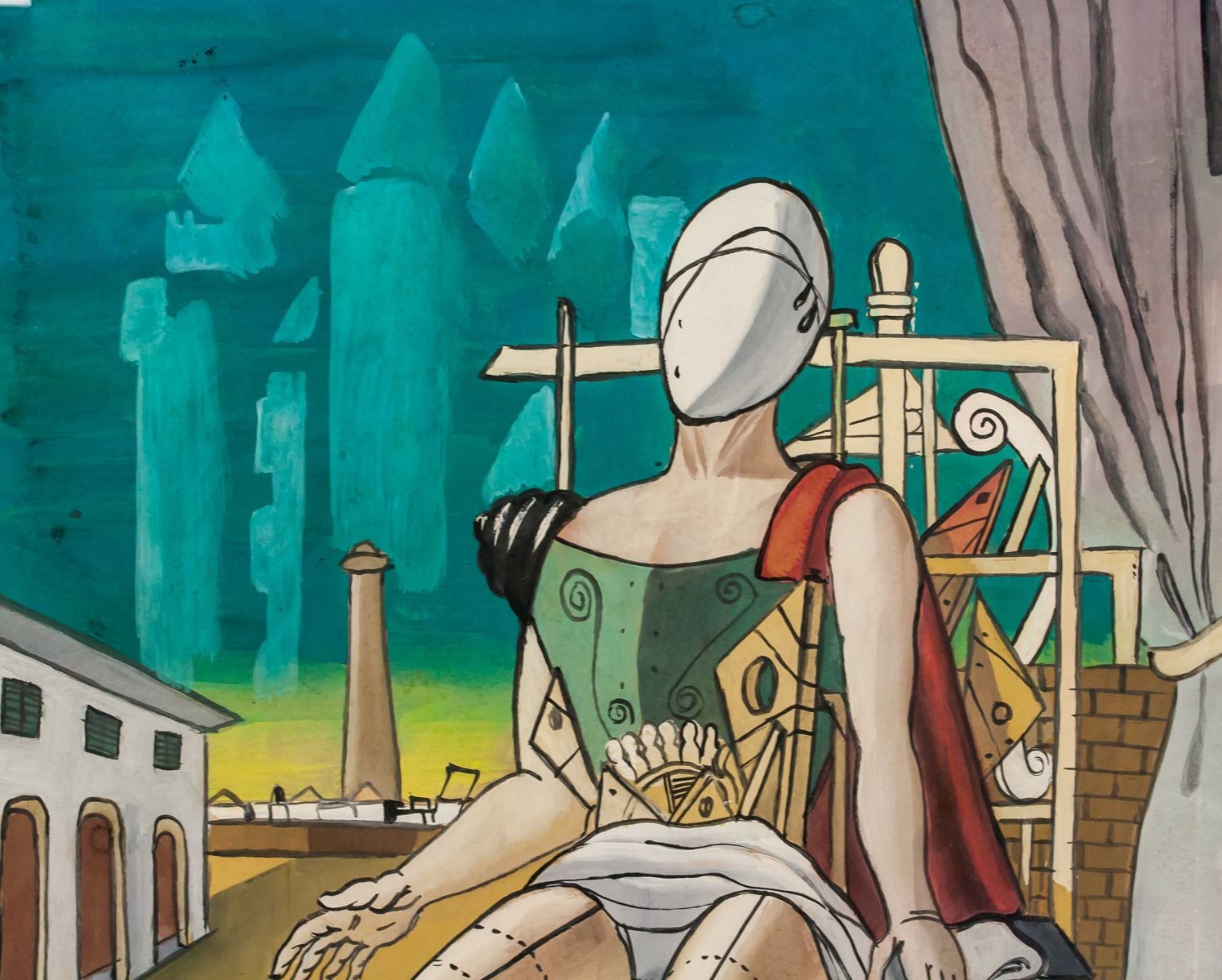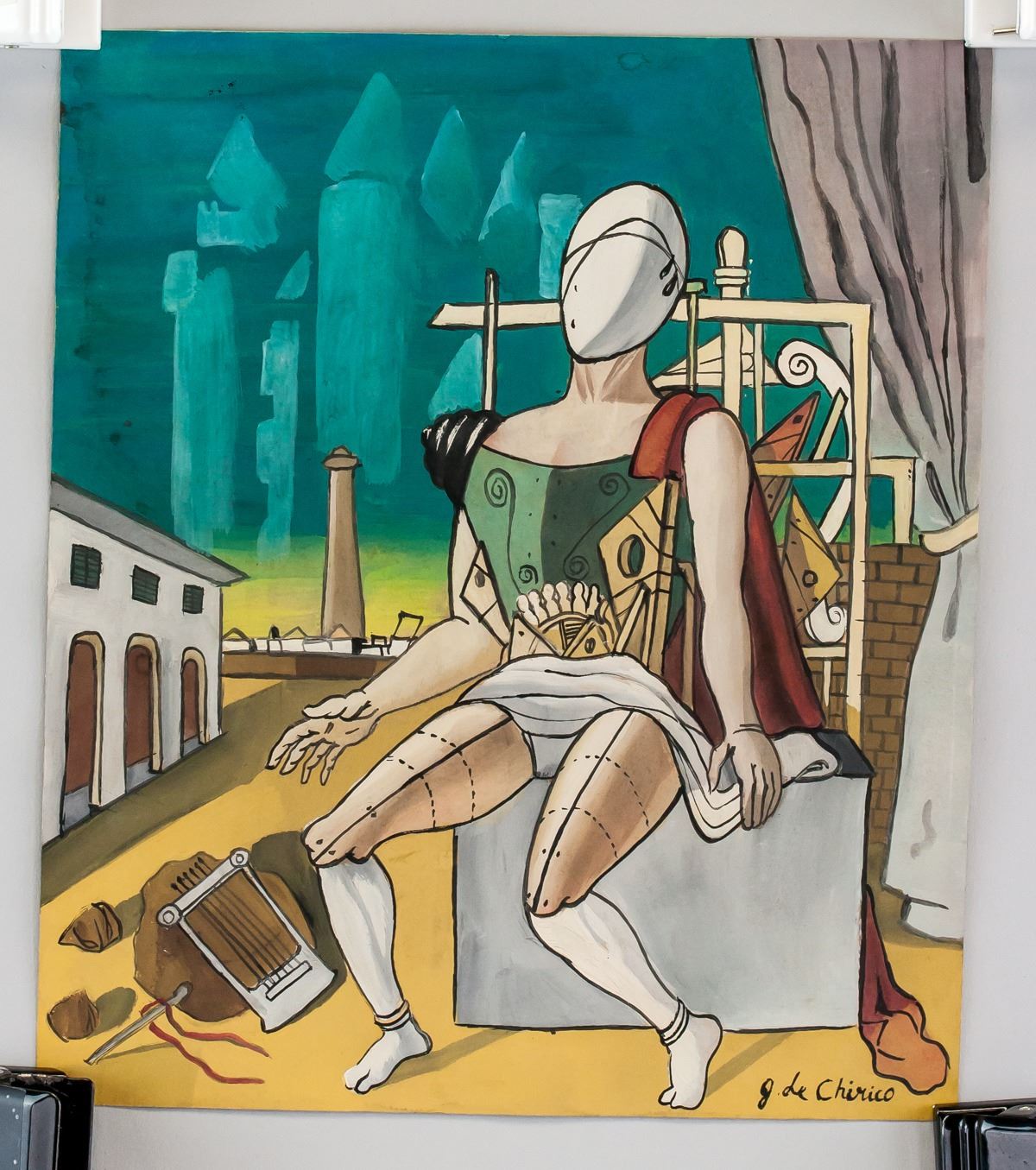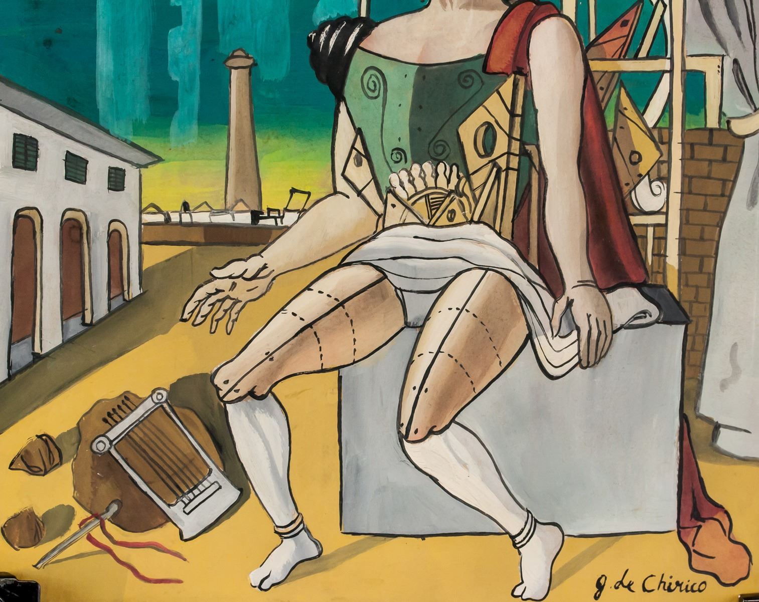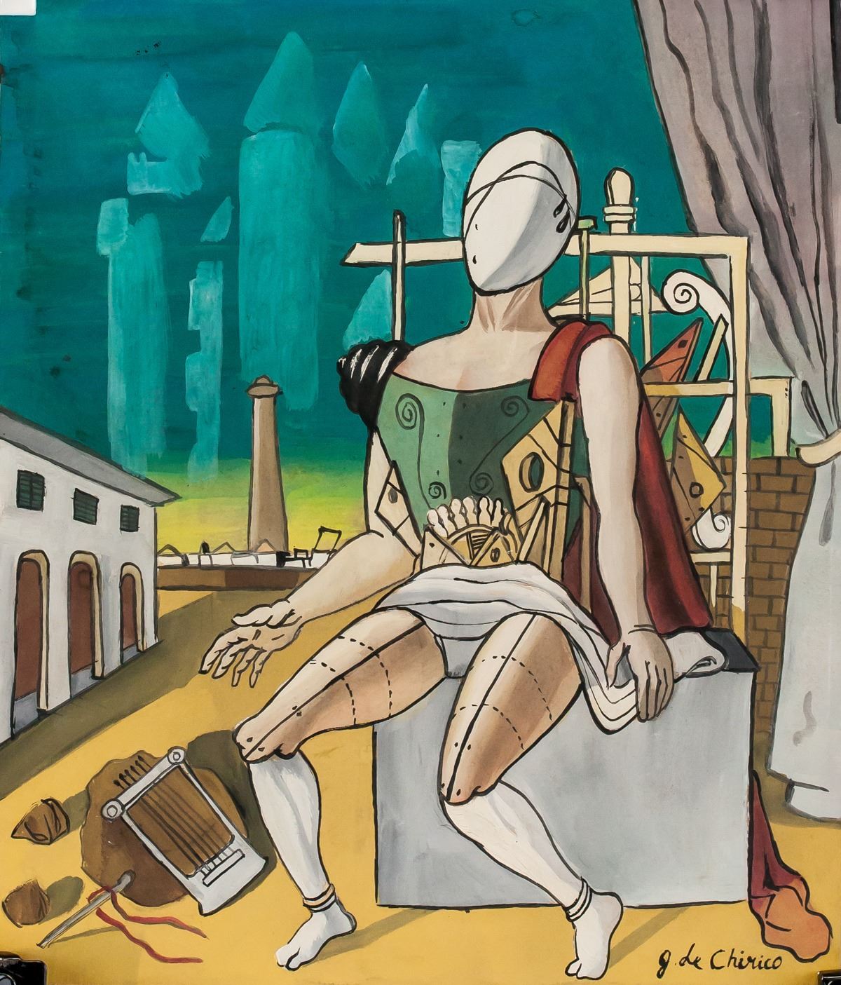 Gouache on paper. Featuring a surrealist portrait. Signed g de Chirico on the lower right corner. Attributed to Giorgio de Chirico (1888-1978, Italian). 24 x 20.5 cm (9.5 x 8 inches). PROVENANCE: Southern Ontario estate