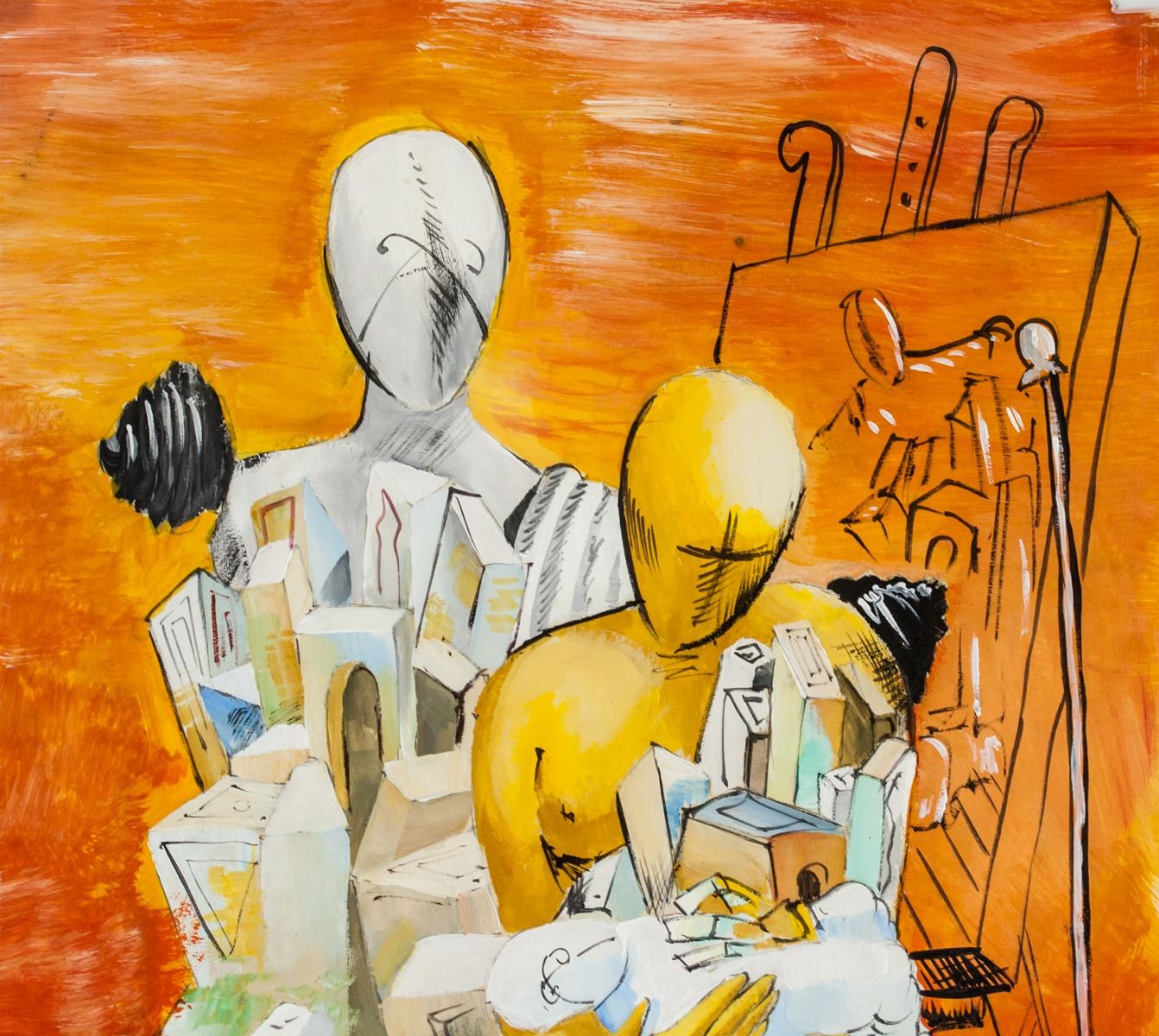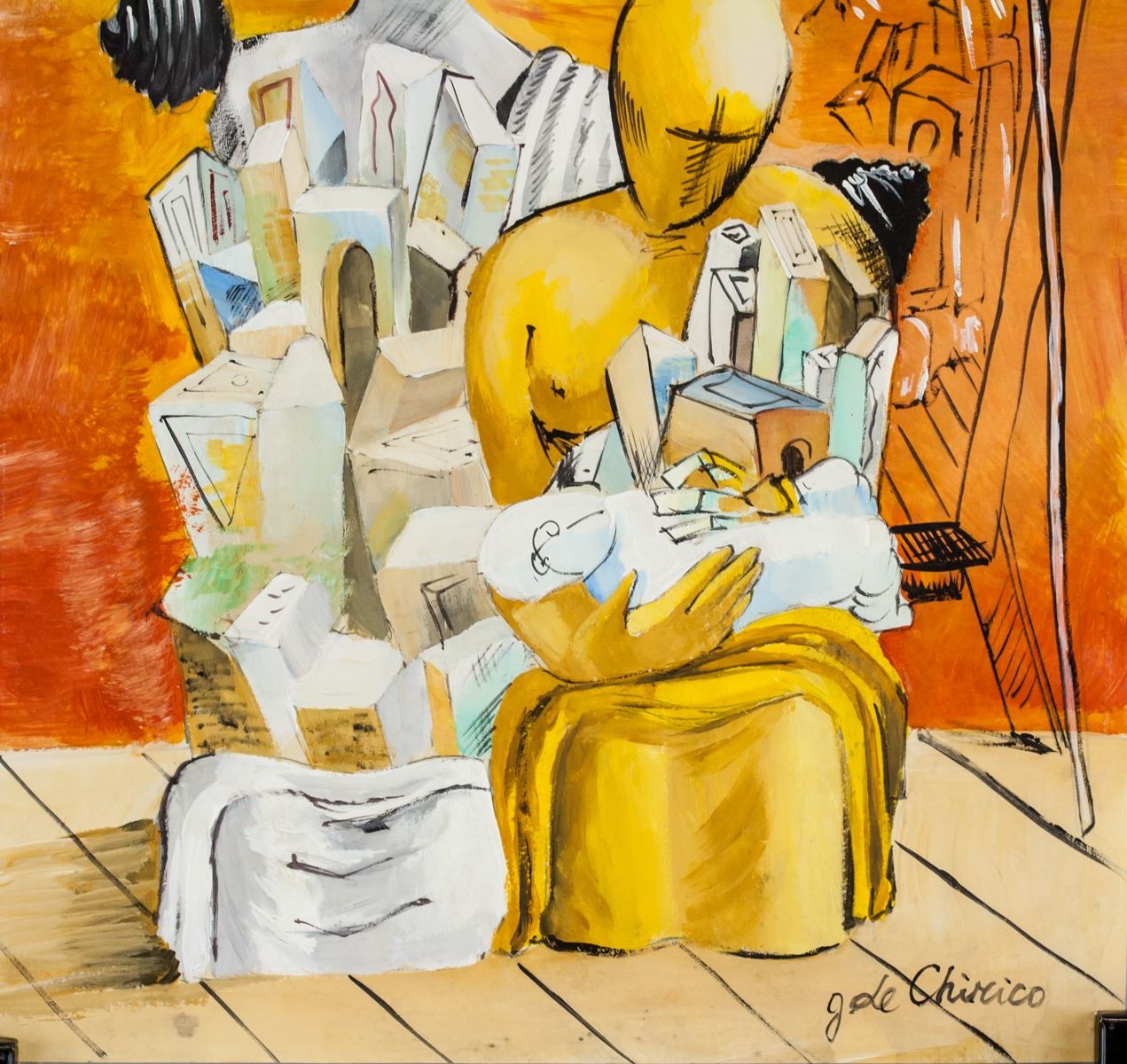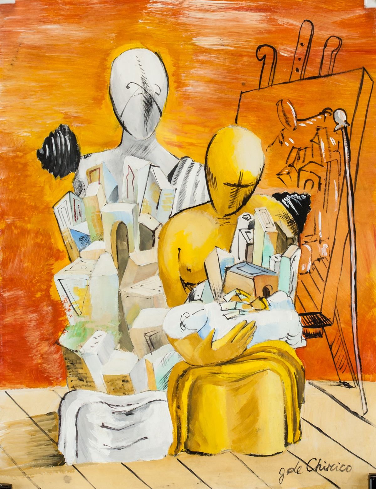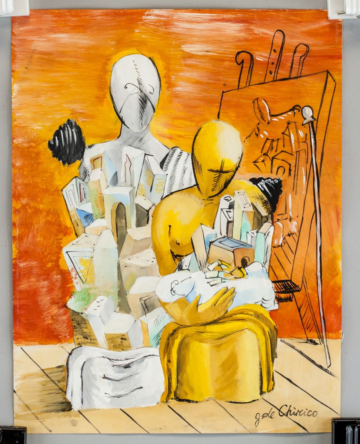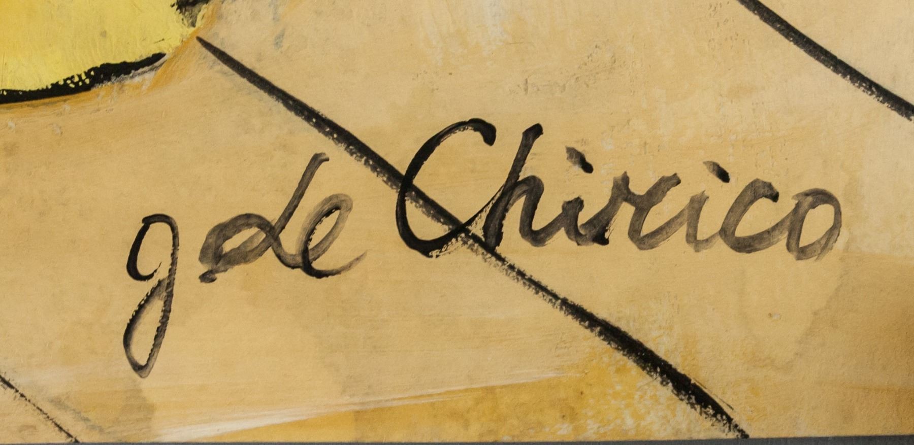 Tempera on paper. Featuring a surrealist portrait composition. Signed g de Chirico on the lower right corner. Attributed to Giorgio de Chirico (1888-1978, Italian). 26.5 x 20.5 cm (10.4 x 8.1 inches). PROVENANCE: Southern Ontario estate