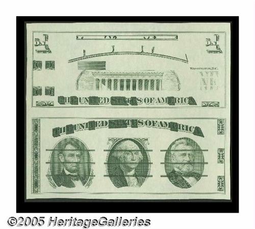 <B>Giori Test Pair. Gem Crisp Uncirculated.</B></I><BR>This test pair was printed in 1976 by a Magna press in Geneva, NY. These trial notes should have been destroyed, but they were spirited away into the collector community. It is now permissible to collect these interesting items, with this example free of the handling signs that often plague these notes.