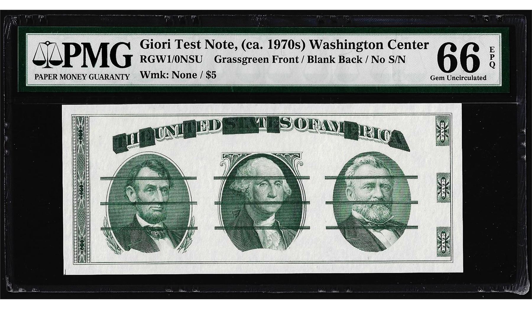 One Giori Washington Face Test Note PMG Gem Uncirculated 66EPQ. PMG Certified.