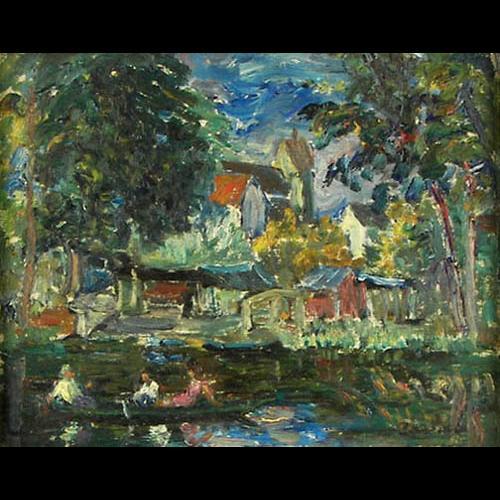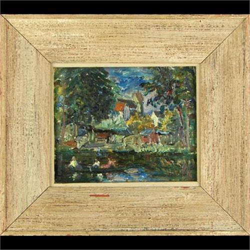 Giovanni Castano (1896-1978) Massachusetts) Oil on Board, "Summertime", 1936, 8 1/2" x 10 1/2", signed lower right, Provenance: Raydon Gallery of New York sticker verso