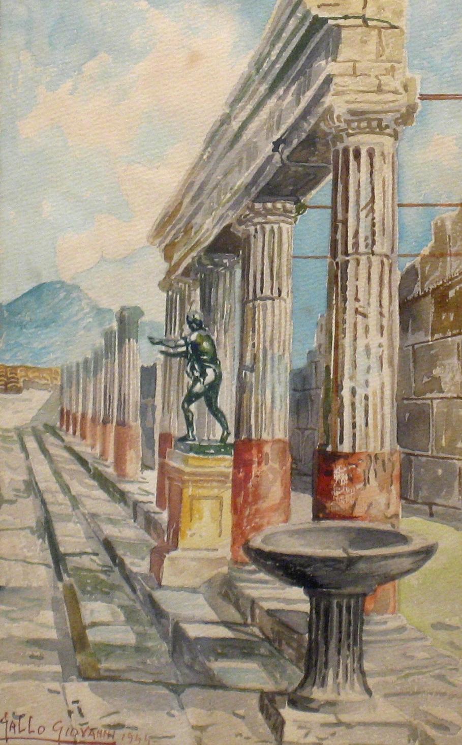 Giovanni Gallo, , B. 1915, Pompeii, 1944, Watercolor, 25x15cm, Signed and dated., , , , ,