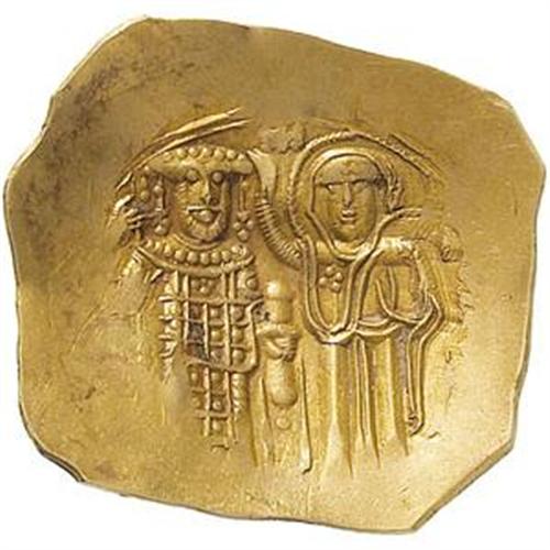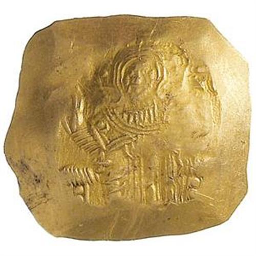 Monete Bizantine. Giovanni III di Nicaea (1222-1254). AU hyperpyron, Magnesia. D/ Cristo in trono di fronte. R/ Giovanni stante di fronte con corona e loros, tiene labaro e akakia. Accanto a lui, la Vergine stante lo incorona. Hendy, pl. 31/13-15. R. 2283 var. gr. 4.40 R. AU. BB/BB+.