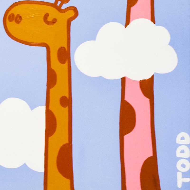 "Giraffe" is an original acrylic painting on canvas by Todd Goldman, hand signed by the artist. This piece comes gallery wrapped. Includes Letter of Authenticity. Measures approx. 48" x 72" (image). Please note: There is wear on the corners and edges of this piece. This piece is available for free pickup in Los Angeles - contact for more info.