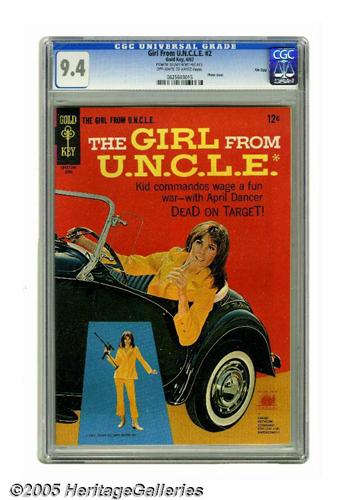 <B>Girl From U.N.C.L.E. #2 File Copy (Gold Key, 1967) CGC NM 9.4 Off-white to white pages.</B></I> Photo front and back covers featuring Stephanie Powers. Overstreet 2005 NM- 9.2 value = $95. CGC census 7/05: 4 in 9.4, 1 higher. <I>From the Random House Archives.</B></I>