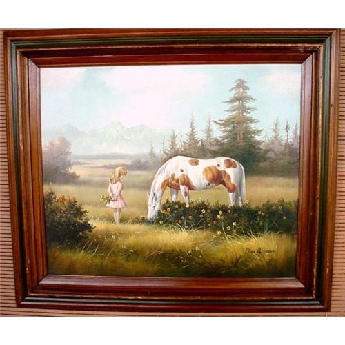</font></strong> I don't know much about Artist but have seen four other paintings of his in an art Gallery, none like this one. The prices range from $895.00 to $2195.00. I feel that this is worth more but want to sell it so at this price who buys it will be getting a good deal...The painting without frame measures 20 inches height 24 inches width The frame needs touch up work. Painting in great shape. Thank you! Support Our Troops...</font>