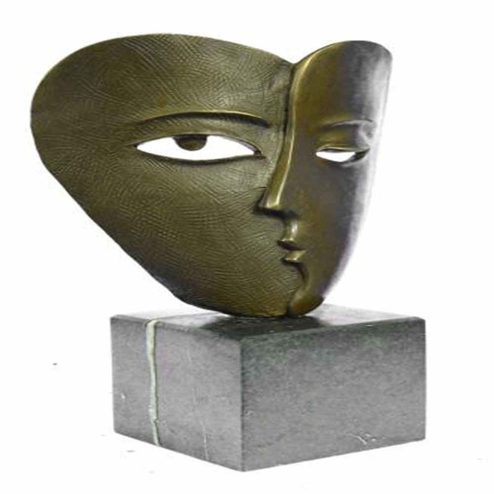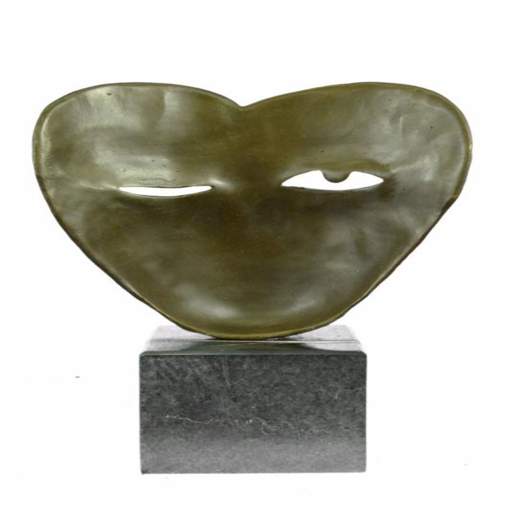 Lovers are a simple designed Sculpture of two faces that is designed like a mask. This modern Bronze Sculpture was affixed on a marble base. Little details like the filigree and detailed designed facial expression make this Bronze a real high quality product. Bronze dimensions with marble base: Height 13 X Width 9 inches. Weight: 14 LBS.