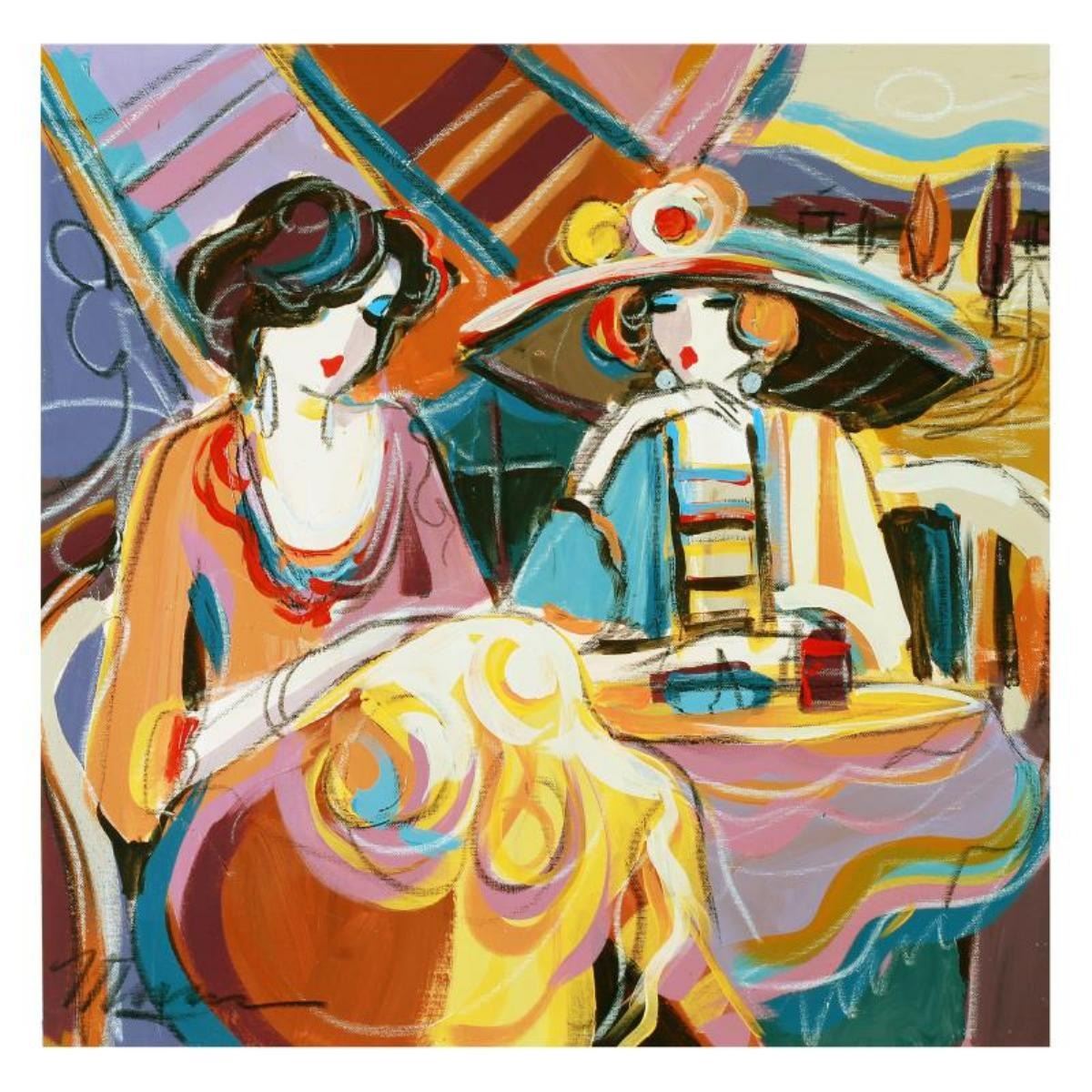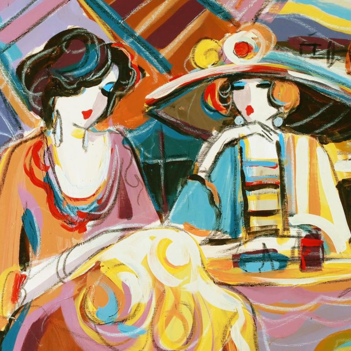 "Girl Moments" is an original acrylic painting on paper by Isaac Maimon, hand signed by the artist. Includes Certificate of Authenticity. Measures approx. 22" x 22" (image).