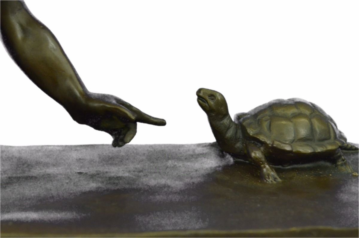 Here Is A Sweet Styled Art Deco Bronze On Marble Base, Created By The Famous Artist Aldo Vitaleh. It Displays A Little Schoolgirl That Is Playing With A Friendly Turtle. The Little Sculpture Is Standing On Square Marble Base And Was Designed By The Well Known Artist. This Figure Is Made Of Finest Bronze Material And Was Casted In Our Foundry In An Amazing Agreement To The Original. Artist Aldo Vitaleh Signed The Sculpture. This True Detailed Museum Bronze Cast Is A Focal Point In Every Exhibition! It Can Be Called An Absolute Eye-Catcher For Friends Of Bronze Sculptures. Bronze Dimensions With Marble Base: Height 9 X Width 14 inches. Weight: 19 Lbs.