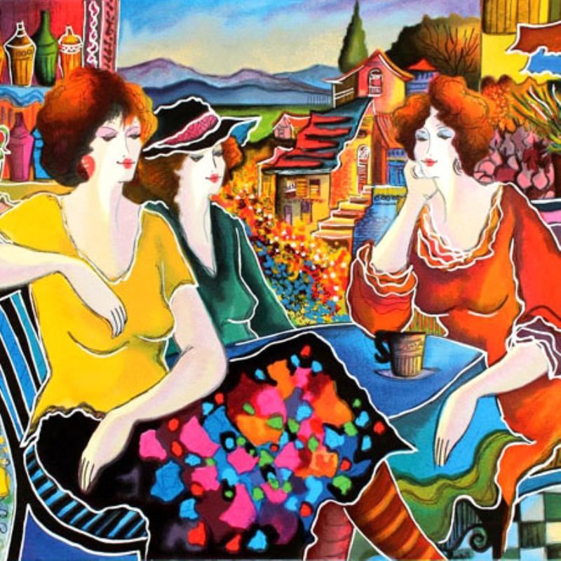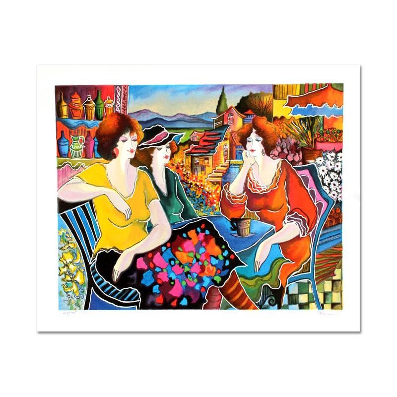 "Girl Talk" is a limited edition serigraph on paper by Patricia Govezensky, numbered and hand signed by the artist. Includes Certificate of Authenticity. Measures approx. 23" x 19" (border), 20" x 16" (image).