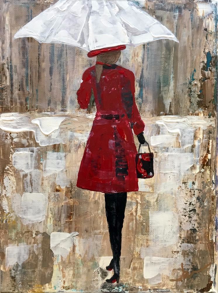 Janier | Title of Art: Dressed in Red | Medium: Hand Signed Original Acrylic on Canvas | Edition #: Original | Unframed Size: 12 x 9 | Framed Size: Offered Stretched. Framing presentation if shown is for concept only. If you need assistance with custom framing, call the experts at ArtForSale