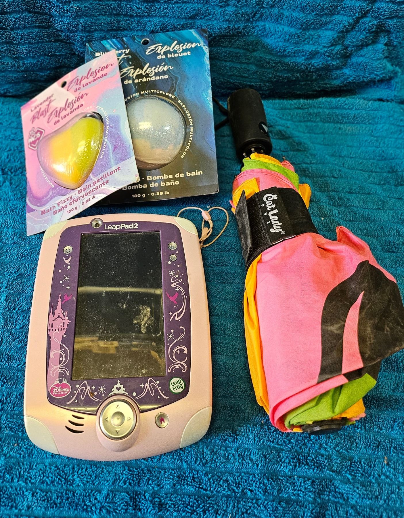 LeapPad2 colorful unbrella an bath bombs